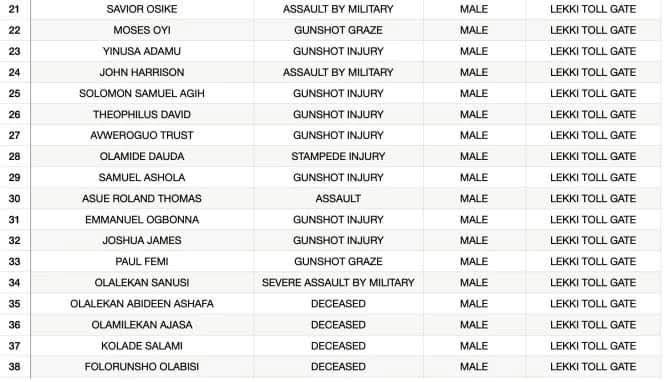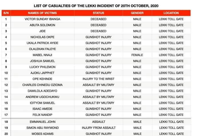 At the inquiry panel, the Lagos State pathology, tendered report of 99 people killed during the Protest, and said at least 3 of the bodies were from Lekki and were perforated by missiles.